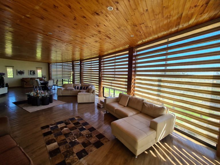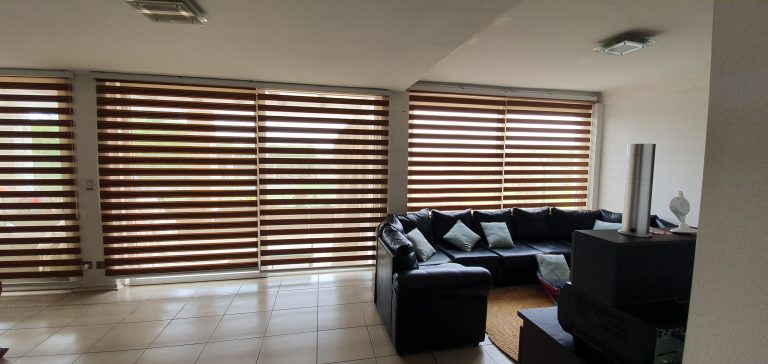 Las cortinas roller DUO consisten en cortinas enrollables con telas de franjas horizontales dobles que se superponen, ofreciendo la opción de tejidos cerrados para mayor privacidad y tejidos abiertos tipo Malla o Velo para una mejor visibilidad, tela 50% Poliéster y 50% algodón con una durabilidad desde 4 años en adelante, según exposición al sol.